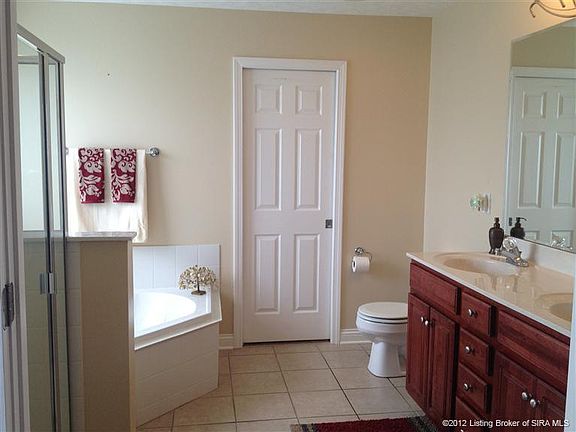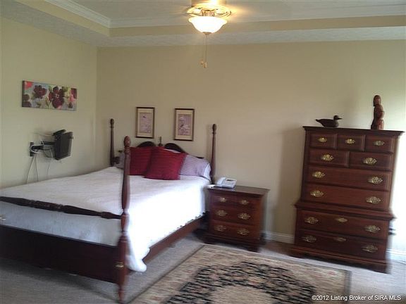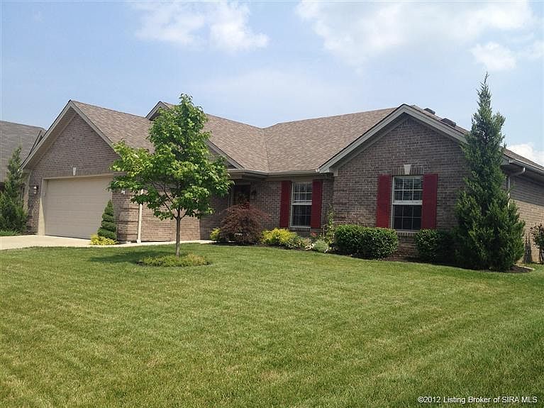 Better than NEW... Well established subdivision with Club house a pool. Beautiful decor and paint throughout this beautiful home. This home features Lots of upgrades including, ceramic tile, hardwood, master suite with walk-in large master bath with jetted garden tub/separate shower/double bowl vanity. Spacious family-room with fireplace, hardwood including hallway. Beautiful eat-in kitchen with breakfast bar and A-trium doors leading to the stunning backyard, stone laid patio lulls you to a pergola to relax, entertain and to restore. Natural fence line with flowering shrubs and invisible fence for pet. Ceramic tile in kitchen, entry and baths. Attached 2 car garage with remote/keyless entry.\n\nInformation Deemed Reliable But Not Guaranteed. Information provided by the Southern Indiana REALTORS® Association, Inc. © 2010 SIRA Multiple Listing Service. All rights reserved. Brokered And Advertised By: RE/MAX FIRST Listing Agent: Fancy Fulton