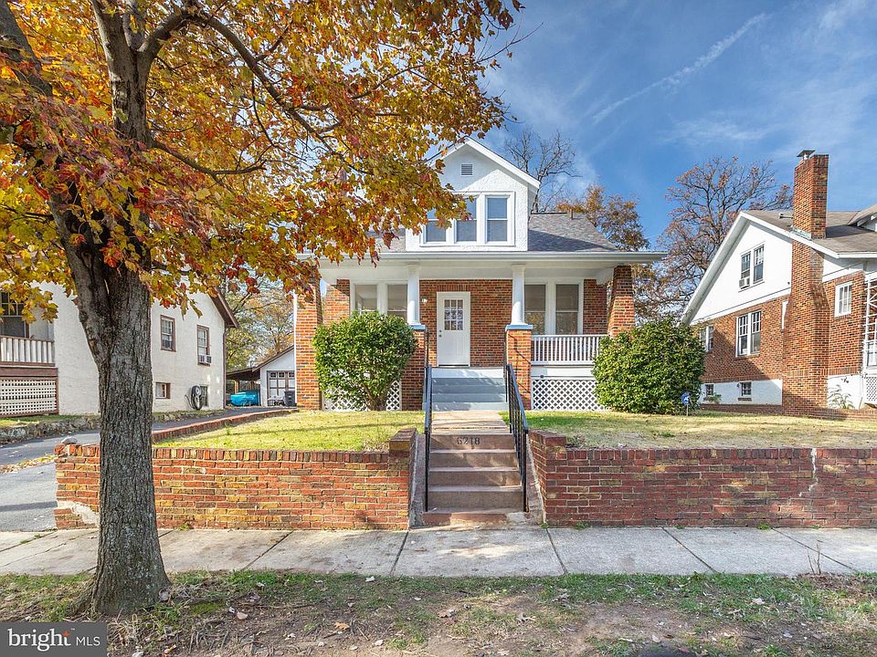 Lovely, large bungalow in hip, happening Hyattsville. Gracious and welcoming covered porch. Main level has been opened up and has a full-width living room. Side-light windows surround the fireplace with its sconces above the mantel. Dining room has 2 large southerly facing windows. There are high ceilings and gorgeous oak floors freshly refinished on the main level. The kitchen has brand new cabinets & SS appliances including a 5-burner gas stove. A cute little porch off the kitchen leads you to the rear yard. Big main level bedroom and full bath too. Upstairs is a gracious hallway, 3 bedrooms, 1 full bath and a very large cedar closet for your winter storage. The partially finished basement consists of 4 rooms - a family room with knotty pine paneling & a full bath, a large office or storage room, a workshop/utility room and a spacious laundry room with rear exit. Long driveway, detached garage great for storage and a large, fenced rear yard. New roof & 2 year young boiler! Great location - easy walk or bike ride to Arts District Hyattsville - Busboy's & Poets, Vigilante Coffee, Franklin's brewpub & restaurant... OR Riverdale Station - Burton's, Whole Foods, Gold's Gym... Also close to METRO, MARC Train stations. You will love living here!