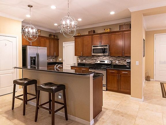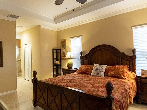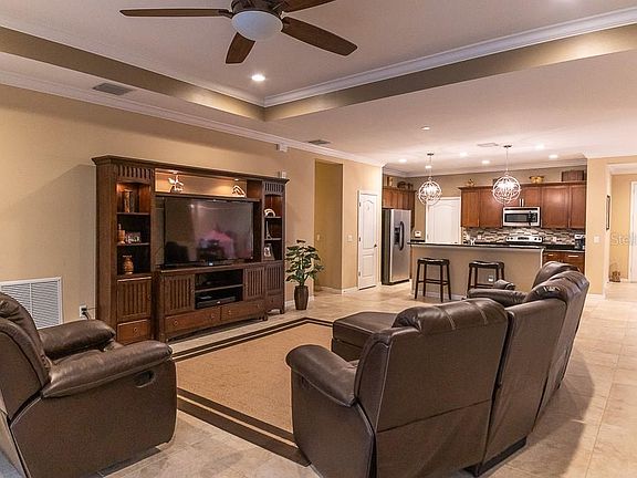 This Neal Communities built home offers sophistication and serenity in the gated community of Mandalay. Spacious layout includes 3 Bed/2 Bath with large Den/Office space that could be easily used as a fourth bedroom if desired. Open floor plan with many extras and upgrades are apparent throughout - tray ceilings with crown molding, 20 inch ceramic tile, LED lighting, fans with remotes. Kitchen has stainless steel appliances, granite counter tops, large island with eating space, walk-in pantry, and custom ordered Kichler light fixtures. Great Room boasts a custom designed Wainscoting wall for that designer touch. Master suite offers His & Hers walk-in closets, double vanity, and large glass walk-in shower. Indoor Laundry room with Washer/Dryer and shelving, 2 hall closets for extra storage space. Triple sliding doors open up to the over-sized patio addition, providing an extra 20X50 ft area, fully enclosed and screened, complete with your very own Hot Tub!! Backyard is enclosed with a 6 ft vinyl fence for added privacy. Retractable screen on the front door to let the breeze in without worrying about bugs. Security system installed. Bring your toys! 3 car garage provides plenty of space and room for storage with built-in shelving. Located between University Pkwy and St Rd 70, this area provides easy access to both I-75 and US 301. Not far from some of Florida's best beaches. Close to restaurants, movie theater, and even shopping at the UTC Mall. Come see it for yourself today!