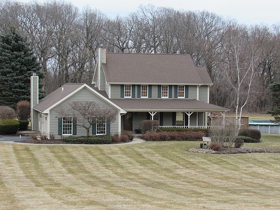 Also available for Lease-option. Classic 2 story home on 5 acres. An additional 4 wooded acres to the East can be included for $40,000. (tax on that additional parcel is only $48). Sit by your pool and watch the deer. Just a few miles from shopping, restaurants & the Chain O' Lakes. Beautiful hardwood floors enhance the main level, new carpeting upstairs and fresh paint throughout. Formal Dining Room with Bay Window opens to wraparound front porch. The Kitchen has been remodeled with Maple cabinetry w/ soft-close drawers, pull out shelves & 2 pantry cabinets. Granite counters, stone back-splash and SS appliances complete the space. Sunken Family Room off the Kitchen boasts a brick fireplace. Breakfast area sliders open onto 24' deck. 2nd deck abuts the huge, above-ground pool (seller will remove if requested). Roof replaced in '09, furnace & A/C in '12, water softener, washer & dryer in '17. 25' x 26' basement for storage or finishing and plenty of room for an outbuilding if you like. Richmond Burton HS. Additional wooded 4 ac parcel to east available too. See upload.