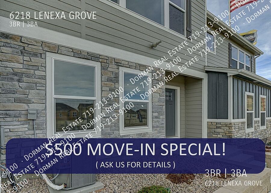 The owner of this property is offering a special incentive of $500 off the first month of rent! Please contact us if you have questions. 2021 build D20 townhouse! 3 beds PLUS an office, 2 full baths and 2 half baths and a 2 car garage make this the perfect, low maintenance home. Enjoy luxurious features such as 9' ceilings, laminate flooring throughout the main level, granite countertops throughout the home, stainless appliances, tile floors and surrounds in all bathrooms, and a complete AC system. From Powers- East on Woodmen, Left on Tutt, Right on Sopresa Lane, Right on Bone Creek Pt., Left on Lenexa Grove Please check out our application handbook by copying and pasting the link below in your web browser http www . dormanrealestate. com /preapplicationpacket Please read Carefully. Please remove spaces when inputting in your web browser COLORADO HB23-1099 DISCLOSURE: PROSPECTIVE TENANTS HAVE THE RIGHT TO PROVIDE TO DORMAN A PORTABLE TENANT SCREENING REPORT, AS DEFINED IN SECTION 38-12-902 (2.5), COLORADO REVISED STATUTES; AND IF THE PROSPECTIVE TENANT PROVIDES DORMAN WITH A PORTABLE TENANT SCREENING REPORT, DORMAN IS PROHIBITED FROM: 1) CHARGING THE PROSPECTIVE TENANT A RENTAL APPLICATION FEE OR 2) CHARGING THE PROSPECTIVE TENANT A FEE FOR THE LANDLORD TO ACCESS OR USE THE PORTABLE TENANT SCREENING REPORT. While Dorman does accept compliant portable screening reports as defined by HB23-1099, which would result in no application fee being required (or possibly an application fee refund), we do still require that all tenants complete our application (click APPLY next to any property on our list of properties below). Additionally, you will be deemed qualified (or not) based on the screening information/data provided on our independently pulled report, not based on information/data on your portable report. Please note that bona fide and compliant portable reports MUST come directly from the consumer reporting agency. 1 Dog Under 50 Lbs