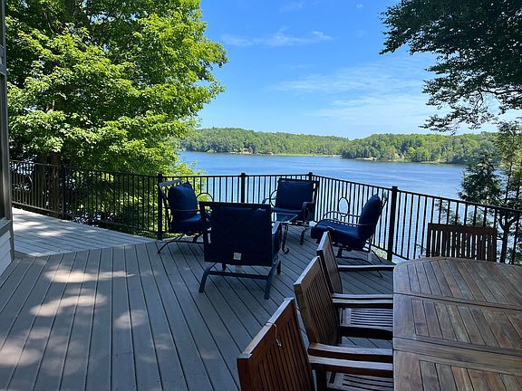 Extensive updates ensure peace of mind, including: house painted (2021), new deck rails (2021), sealed driveway (2023), and a new dock system. Outdoor living shines with expansive decking, a hot tub retreat, and lakeside dock for effortless water access. For storage and convenience, the property includes an attached garage plus a detached garage with an upper-level loftideal for a workshop, studio, or extra storage.