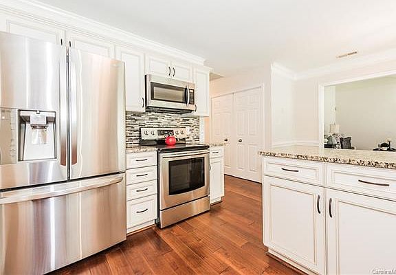 Beautifully updated home in the Ardrey Kell HS district! Stainless Steel Appliances, Convection Oven, Bosch Dishwasher, Side by Side Refrigerator; Granite Counters, linear glass tile back-splash, pretty cabinets w updated hardware, new light fixtures in the Kitchen, Breakfast Rm & Dining Rm along w beautiful wide plank engineered hardwood floors. The Great Room features a vaulted ceiling w a wood-burning fireplace. Lrg Master Bedroom Suite with vaulted ceiling & walk-in closet. Master bathroom has a garden tub, new frame-less glass (ordered) shower w tile surround & half wall, updated dbl vanity w new hardware, faucets & mirrors. New carpet, fresh paint & hardware. Level treed backyard w private shadow-box fence, mature trees & patio. No HOA. Yard backs up to Mecklenburg County wooded property. The Polo View community is between Rea & Providence Rd off of Ardrey Kell - making the location INCREDIBLE w quick access to I- 485, shopping, dining, recreation, business parks & health care.