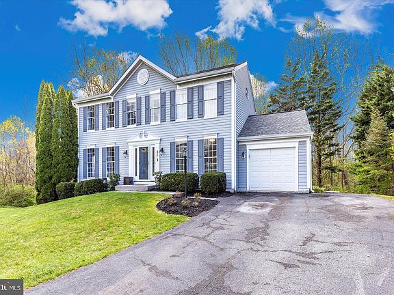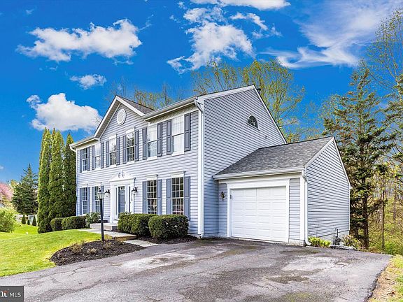 Beautiful center hall colonial on the best cul-de-sac lot in Ballenger Creek Meadows! The entry foyer and formal living room feature hardwood flooring and the spacious eat-in kitchen has a breakfast nook & center island. There is plenty of counter space. The roomy family room off the kitchen has a wood-burning fireplace and with French Doors opening to the deck with great views of the woods and stream. There is also a formal dining room. Upstairs you will find 4 good sized bedrooms including a primary bedroom & ensuite bathroom with vaulted ceilings & a large walk-in closet. The primary bath also has double sinks, a soaking tub & separate shower. The finished, walkout lower level consists of a cozy recroom, laundry and a huge storage area that could be finished into a couple more rooms. Other amenities include fresh paint throughout, new carpeting, a one-car garage, bay windows in the living room and breakfast nook, a three-piece rough in a full bath in the basement
