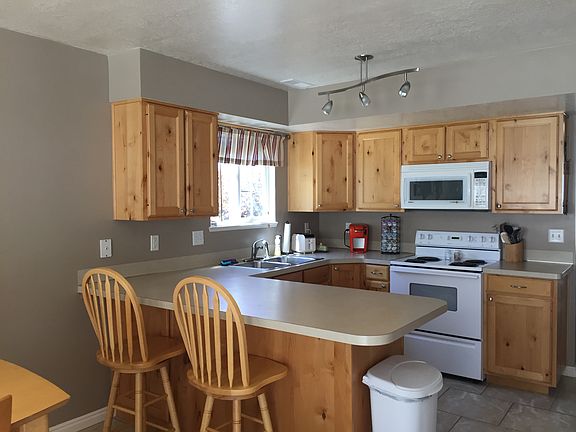Well cared for and spacious town home. Two comfortably sized bedrooms with large closets. You will love the large kitchen and dining area. Single car garage with storage shelves and additional designated parking. End unit with fenced in private patio located next to large open area.