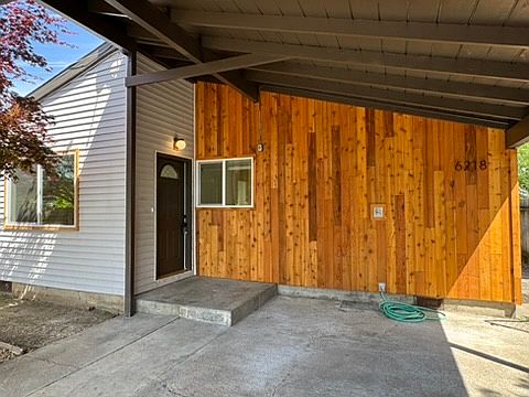 Smart three bedroom, one bath mid-century home in Lents. New engineered floors. Updated kitchen with new appliances. Washer and dryer included. Three private bedrooms. Fenced yard. Driveway. Distinctive architectural style. Close to the heart of the Lents commercial district. No smoking. Two cats and one good dog welcome. Renters insurance required. Not a type A accessible unit. Go to the High Five Properties for disclosures and applications. Screening fee is $50 per person.