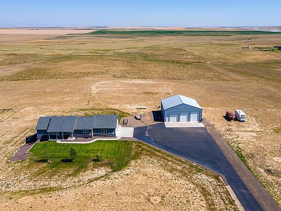 Let's get ready to rumble, you'll be fighting over this one! WOW is all there is to say; this newer custom home on 45 ACRES has it all including upgrades galore, location off paved road, and the outbuilding of your dreams. The property welcomes you via asphalt driveway where you pull up to this gorgeous ranch style home. The covered front patio invites you in. Step inside to plank tile floors, high ceilings and open floor plan. Kitchen has tons of granite counter space, high-end Samsung black stainless appliances that are included, travertine backsplash and large pantry. The granite continues into the laundry room with utility sink & lots of storage. Take the steps up to the bonus room over the garage, this large room could easily be bedroom #4 if you needed but it makes a great home office, craft room or family room. The huge Master suite sits on the private West end of the home with unobstructed views and large master bath w/ spacious walk-in shower. All bathrooms have comfort height toilets and vanities. Master suite also has a huge walk in closet. Upgrades include solid core doors, sound proof insulation, fiber optic internet, fire suppression whole house sprinkler system and extra wide stairwells. Unfinished walkout basement is light & bright w/ high ceilings. Covered back patio is a great place to relax & bbq. Home is landscaped front & back. A few steps away finds you inside the 50x50 shop, a true hobbyist dream. The shop has 4 doors; 14 ft, 12 ft, 10 ft & the man door. Year round building; it has radiant heat, has R26 blown in wall insulation, is finished & has 200 AMP with 220 outlets, concrete floor & a floor drain. Water right outside the building. Ideal RV garage, this can easily hold up to 9 vehicles w/ room to spare. RV dump on site, West side of shop. A rare find on the beautiful Colorado plains, this property gleams with pride of ownership & thoughtful touches. If you are looking for privacy, space & high-end improvements look no farther.
