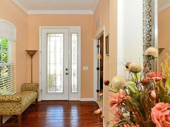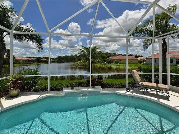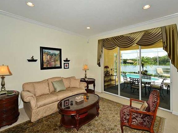Sophisticated and beautifully maintained former Neal Communities "Siesta Sand" model in Mandalay. Long lake views from majority of primary living areas. Spacious 2912 square feet under air, this model boasts two master suites plus another bedroom and separate den. If desired, the second master suite could easily convert back into two guest bedrooms making it a four bedroom, three bath home plus den. Stepped ceilings, 10' ceilings, crown moldings, mocha cherry styled cabinetry, subway tile backsplash, SS Kitchen Aid appliances, Whirlpool front loading washer & dryer on pedestals, tile flooring, hardwood floor @ entry, three-car garage with built-in cabinetry, security system, hurricane shutters, private pool with mosaic tile and water feature are some of the lohg list of the upgrades. Mandalay is a gated community located just north of the bustling University Parkway corridor featuring the new mall, ample restaurants and healthcare choices. Downtown Sarasota and our white sandy beaches are just a short drive away. This home is a beauty!