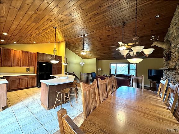 Welcome to the very spacious custom built 6219 Coleman Mills Road. This 3-4 bedroom 3 bathroom raised ranch is not your common raised ranch, this home has unique features that make it a stand-out property. Starting with gorgeous and gleaming dark stained SOLID oak flooring throughout the main level. Matching oak kitchen cabinetry, with a massive Corian island that seats 6, a brand-new gas range/oven, refrigerator and microwave that shine! The great room incorporates living, dining and kitchen spaces that share the impressive, floor to ceiling, natural stone, gas fireplace. Gather fireside and enjoy the warmth and ambiance of this beautiful centerpiece of the home. You'll find knotty pine cathedral ceilings that exude rustic elegance in the great room space. On the main level there are 3 bedrooms and 2 full baths, including a primary bath with Whirlpool tub off the primary bedroom. There's more! On the lower level currently, there is a family/game room/workout area, with another full bathroom. This could easily become a super in-law suite or apartment to suit or more bedrooms! It's worth noting that there is a level entrance through the garage as well. The garage is attached, 2 stall, heated and drywalled. Have a workshop if you like! This property is situated on 1.21 acres with a lovely, wooded view and a deck with sliders off the kitchen for easy grilling and dining during warmer months. The sliders and windows are the desired Anderson brand. This home was well designed, well cared for and maintained, with meticulous attention to detail and built for ease of modern life in CNY. Come in and be welcomed home!