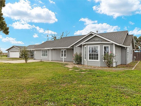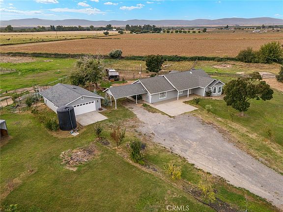 Welcome to this charming ranchette on 5 sprawling acres, tucked away on a peaceful cul-de-sac just outside Orland. Offering the best of country living with ample space for your animals, toys, and more, this property is just a short drive to I-5 and only 30 minutes from Chico. Inside, you’ll find 3 bedrooms, 2 bathrooms, and two versatile living spaces. The family room boasts vaulted ceilings, large windows that fill the room with natural light, and a cozy free-standing stove. A second living area offers endless potential—whether as a formal living room, game room, or even an additional bedroom with its own closet. The kitchen has been thoughtfully updated with granite countertops, a subway tile backsplash, stainless steel appliances, and beautiful cabinetry. Enjoy casual meals in the cozy breakfast nook, or gather in the dining room just off the kitchen for larger get-togethers. The spacious primary suite has sliding doors that open to the patio, as well as an en-suite bathroom with a double sink vanity, separate shower, and a relaxing soaking tub. Additional features include freshly cleaned carpets, rich wood laminate flooring, and a whole-house fan, newer HVAC, new water heater, Culligan whole home filtration and under sink reverse osmosis filter. Outside, the incredible 5-acre property awaits! With multiple newly fenced pastures, a garden area, and a riding arena, there’s space for everyone—including horses, chickens, and other animals. Two new 3 horse stalls, new exterior shelter for equipment, chicken coops, and established fruit trees add to the country charm, while a large patio with a hot tub is perfect for relaxing or entertaining under the stars. There is also a 5,000 gallon water tank and solar panels provide energy efficiency, making this the ideal blend of rustic appeal and modern convenience. This ranchette is truly a dream property!