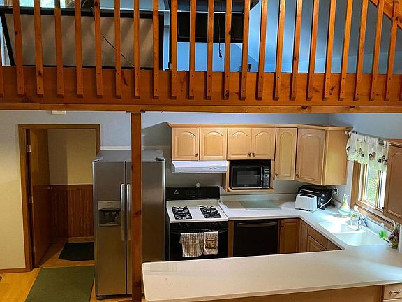 LAKEFRONT ESTATE SALE! Sip your morning coffee and overlook 84' of pristine lakefront views! 3 bedroom + loft, 2 bath open floor plan with propane heat, central A/C, woodstove, stone fireplace, large 3 season room. rear deck with access from bedroom and sun porch. Four total lots totaling .58 of an acre.