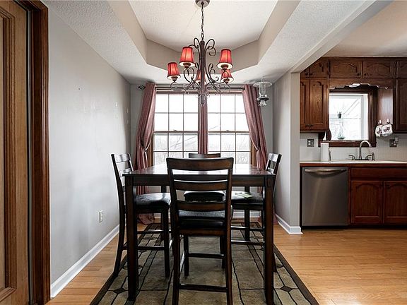 Charming Ranch home in Gladstone area. Wonderful stained wood throughout home. NEWER Stainless appliances. Updated baths in past few years. Vaulted ceiling in great room. Finished rec room in lower level. 4th non conforming bedroom or craft room. Large fenced yard with newer storage shed. Large garage with built ins. A circular drive in front for extra parking.