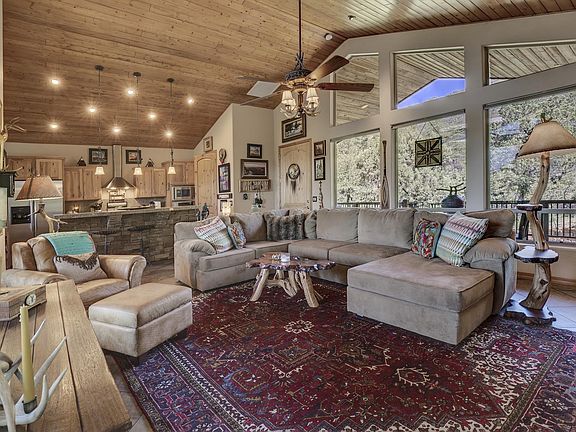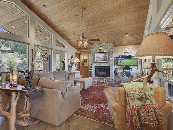 Welcome to the NEST! This meticulously maintained home is beautiful inside and out! This custom home with split floor plan has views from the tree tops. This home will not disappoint with wood T & G ceilings throughout the home inside and out and a gourmet kitchen with custom cabinets, granite countertops, breakfast bar, walk-in pantry and stainless Kitchen-Aid appliances. The Large Master Bedroom and Master Bath with jetted tub and separate tiled shower is privately situated at one end of the home. The other 2 bedrooms at the other end of the home are perfect for guests. Floor to ceiling windows brings the outdoors in. Outdoor Living with over 1.250 SF of Covered TREX Deck Space with incredible views is the perfect spot to watch the monsoon lighting storms and the wildlife below.