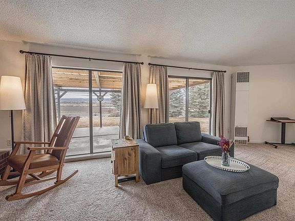 This beautifully remodeled ranch home on Montrose with breathtaking mountain and valley views is ready to be your new home sweet home! Nestled at the end of the cul-de-sac on Jig Road, overlooking Montrose in the best way, this lovely home sits on 1.13 irrigated acres with an attached 2 car garage. The immaculately maintained outside of this property features a front and back covered patio space, xeriscaped landscape features, as well as lush grass yard space with automatic sprinkler systems and gutters, mature trees and shrubs, in-ground fire pit, and a shed with electrical outlets! Inside you will be welcomed warmly with new plush carpet, tile and paint, and attractive lighting and fixtures, with some original pieces of the home remaining paying homage to the appealing period home features such as the handsome wood in the kitchen, and the brick surround of the fireplace in the living room. The kitchen features plenty of cabinetry and counter space, with an in-wall oven, microwave, range top and hood, dishwasher and refrigerator, with a laundry space just off the kitchen including both washer and dryer, and convenient cabinet and counter space for storage. The living room is warmed with natural light coming in from the sliding door out to the incredible outdoor space and amazing views. The space here also features a gas heating unit and pellet stove inset in the fireplace with a period-true angled brick surround. Down the hall way, you will find a guest bedroom and half bath, as well as an amply sized master suite with 3/4 attached bath with double vanities. Additional updates including additional blown in insulation in the attic as well. Septic cleaned and inspected in 2021. Make this incredible property inside and out your new home sweet home today!