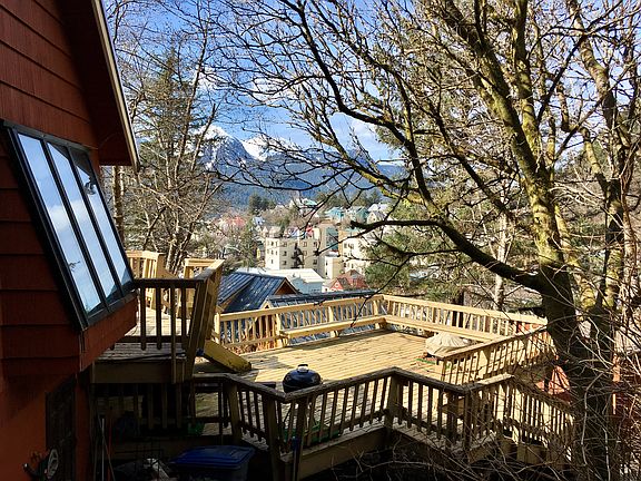 Rare find on historic Starr Hill. Nestled along a quaint path where Kennedy St. turns into 4th St., this urban oasis is just steps away from all of the desirable downtown amenities Juneau has to offer. Vintage craftsman finishes are accented by contemporary upgrades, including an oversized day bed under a wall of windows, vaulted ceilings upstairs, hardwood flooring and trim throughout, and a cozy atrium. Enjoy views of water, mountains, and city lights from expansive outdoor area, or take a moment to relax in the sauna. This layout is truly one of a kind, so don't miss the chance to make it your own. Call Mercedes for showings (907)-321-5021