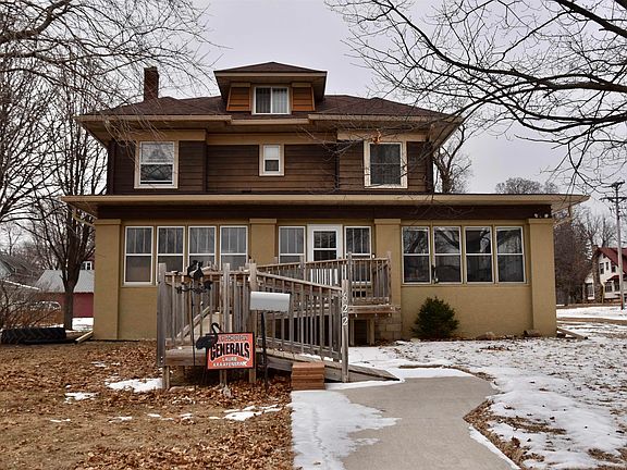 New Roof and Gutters Summer 2025! Welcome to this much-loved, character-filled home where vintage charm and thoughtful updates come together beautifully. Built in the early 1900s, this residence showcases stunning original woodwork throughout—from the intricate staircase to solid wood doors, wood floors and trim that add warmth and craftsmanship rarely found today. The main level offers a functional layout with a spacious kitchen, dedicated dining area, and comfortable family room—perfect for everyday living and entertaining. You’ll also find the convenience of main-level laundry and a split three-quarter bath (featuring a separate half bath and shower), adding to the home’s practicality. Also, on the main you will find an enclosed porch for summertime enjoyment and another enclosed 3 season area serving as an additional living space Upstairs on the 2nd floor you will find 3 generously sized bedrooms and a full bath. Going one more level up a fully finished attic serving as additional bedroom and closet space—ideal for guests. Other options could be a home office or flex space. The home is equipped with forced-air heating including a separate furnace in the attic, ensuring comfort through every season. Whether you’re drawn in by the beautiful interior details or the well-thought-out living spaces, this home offers the perfect blend of history and heart. The property sits on a corner encompassing two lots offering delightful outdoor space, storage shed and 1 stall garage.