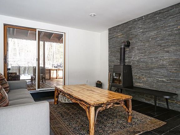 Stylishly renovated cedar-sided contemporary sited privately amid 4 lushly wooded acres. There's a thoughtful, modern sensibility here, with an open, loft-like floor plan and soothing energy throughout. Kitchen and bathrooms are fresh and crisp and there are calming views of nature from every window. Wittus Shaker wood stove provides efficient alternate heat in winter, while ductless a/c cools the home in summer. There's a sunny deck along the south side and a cool screened porch on the north side, both offering wonderful opportunities for outdoor entertaining.