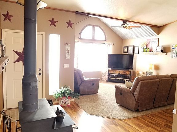 Adorbs!!! Come take a seat on the front porch and enjoy the beautiful Ruby Mtns! Nothing but charm throughout this well taken care of home. All three bedrooms are large in size with lots of natural sunlight. Corrugated sheet metal on the ceiling of the living room adds lots of character. Stay warm with the beautiful wood stove. In need of some flat acreage for horses? This property fits that! Brand new flooring in BOTH bathrooms. Put it on your list to preview!!