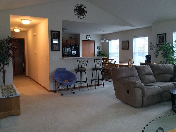 Enormous, immaculate, 3BR, 2 Full Bath Condo with lots of Windows in Gorgeous setting. Home features attached 2 Car Garage, new carpet, vinyl flooring in kitchen and baths, custom window treatments, soaker tub in master bath, newer furnace and hot water tank, 200 Amp Power Service, prewired for telecommunications. New appliances including fridge with bottom freezer, dishwasher, garbage disposal, stove and microwave. Exterior door entry to wood deck off living room. Nature setting next to stocked pond and meticulously landscaped. Surrounded by open fields, parks, and woods. Pet friendly neighborhood with pet stations. Easy living: Association takes care of all things exterior including snow removal, landscaping and structure integrity. Seller gives buyer $1,800.00 painting credit!! Will pay 2% to buyer's realtor.