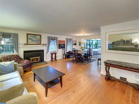 Beautiful 4 bed, 2.5 bath Colonial located in sought after Ardmore. Kitchen offers Formica countertops, tile backsplash, and center island with flat cooktop! Beautiful archway to the open living room with crown molding, fireplace, and gleaming hardwood floors. Hardwood continues to the dining room and gorgeous sunroom featuring a large hot tub and tile floor. Main level is complete with powder room, den, and garage. Upper level master bedroom has 3 windows, which allows the room to be filled with natural light, a walk in closet with fantastic shelving, and an en suite with shower stall. Three additional bedrooms a full bath, and access to the attic completes this level. Outside offers 3+ car driveway parking and a large brick patio perfect for summer nights and entertaining. Home is conveniently located just a short walk to Elwell Park, downtown Ardmore, and Haverford College. Do not miss this opportunity!