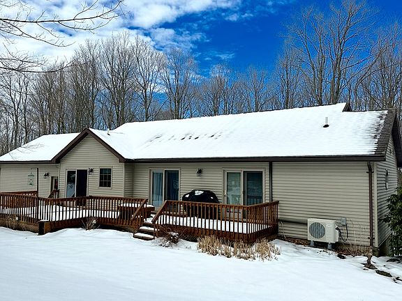 Beautiful Ranch nestled on 9.39 acres- immaculate & well maintained offering 4 bedrooms & 3 full baths, an open living room/great room w/ vaulted ceiling, well appointed kitchen & spacious owner's suite w/French doors that open out to the expansive deck. Formal dining room. Walk-out lower level w/ private guest suite, full bath & laundry room w/ large family/living room. Fireplace. Patio. Picnic area w/fire pit & barbecue pit w/electric outlets. Shed. 2 Car Garage. Home warranty included. Part of the 100% Money Back Guarantee Program. Your own private retreat to enjoy!