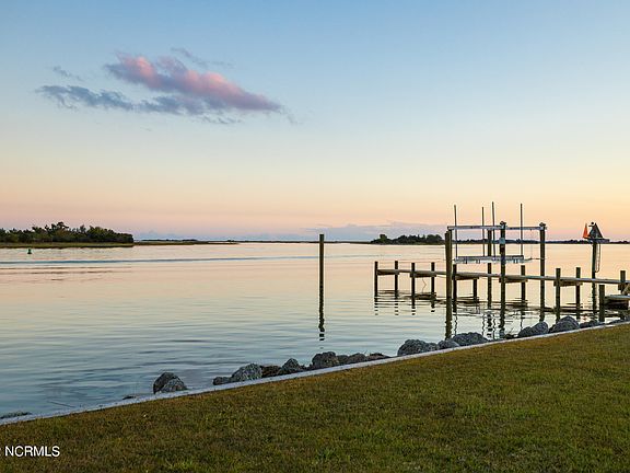 Spectacular Intracoastal Waterway custom home with amazing panoramic water views of the White Oak River and Bogue Inlet! Perfectly located for privacy on 2.46 acres, only 5 minutes to the Swansboro Historic District. This exceptional home is a rare opportunity, elevated above the floodplain, approximately 678' of waterfront. Relax on the covered deck or patio and take a dip in the heated, salt water swimming pool. You will love this open plan home, featuring a dramatic tongue and groove vaulted great room ceiling, with a floor to ceiling faux stone fireplace. The spacious dining area will accommodate a large table for entertaining, conveniently located next to the thoughtfully planned kitchen with stainless appliances, craftsman style cabinets with glass front for display and breakfast bar. The owner's suite includes a luxury bathroom with a jetted tub, new walk-in shower and double sink. There are 3 guest bedrooms and 2 additional full bathrooms on the main level. The lower level showcases a living room with a porcelain tile floor, wet bar with fridge, a game table or pool table niche', and a half bathroom. The lower level living room walks out to the covered patio, adjacent to the inviting swimming pool. Low maintenance hardwood and tile floors throughout this custom home. There are captivating water views from nearly every room. The many special features of this finely crafted home include a separate conditioned storage/utility room, outdoor shower, generator, irrigation well and system, Kinetico water softener, hurricane shutters, Bahama style shutters, exterior cargo lift, and oversized carport. A true gem, meticulously maintained with beautiful landscaping! This is the waterfront home you have been dreaming about on the NC coast, make it yours!