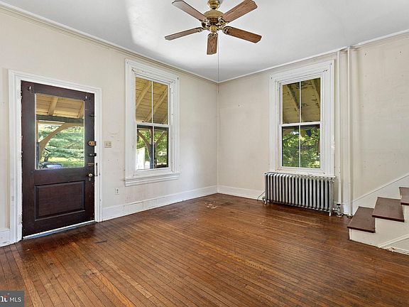 Contractors, investors and DIY-ers, take note! This classic in-town Berwyn twin home has so much potential to offer. Great bones, spacious rooms, high ceilings, oversized windows, and original hardwoods just waiting to be refinished are only a few of the appealing characteristics of this home. The wraparound front porch with standing seam metal roof surrounds the main entry, highlighted by the windowed solid oak door and vintage hardware. A “front to back” floor plan here offers the possibility for an open concept first floor – making an appealing use of the nearly 1,900 square feet of interior space. The Living Room features a ceiling fan, a large pantry/coat closet that could be converted to living space, and a turned stairway leading to the second floor. Three bedrooms with painted floors, and a full bath with tub/shower will be found here. In addition there is a walk-up attic, offering the possibility for a fourth bedroom, master suite or home office. Back on the main level, the formal Dining Room displays a faux fireplace, adjacent one-piece Powder Room, exit to the yard, and doorway access to the unfinished basement. The Kitchen offers plenty of space for a complete transformation, to include an abundance of cabinetry, a center island, and an array of new appliances. A Mud Room/Laundry Room is positioned beyond the Kitchen and features storage cabinetry, washer and dryer, and exit to the side yard. The yard itself could become an oasis for relaxation and fun, while flanked by mature trees and plantings. Parking for numerous cars in the oversized driveway will make entertaining convenient for owner and guests. While imagination and creativity will transform this worthy home, no imagination is needed to take advantage of the excellent Tredyffrin Easttown schools, and a location that highlights walkability – to restaurants, watering holes, coffee shops, Clay’s Bakery, Handels Ice Cream, CVS shopping plaza, seasonal Farmers’ Market, library, and the R5 Berwyn train station.