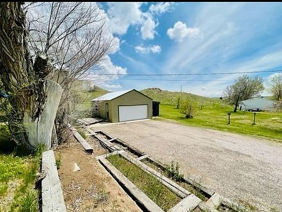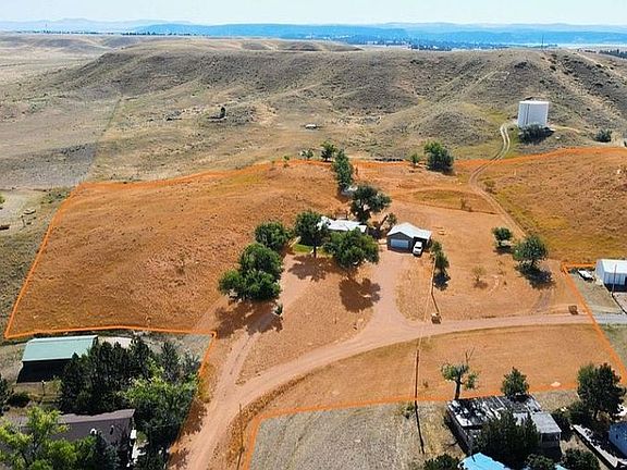 2 bedroom house right on the edge of town with 6.2 acres. This property has 3 RV spots, a 2 car garage with a carport. Very private back yard with a great view of Laramie Peak