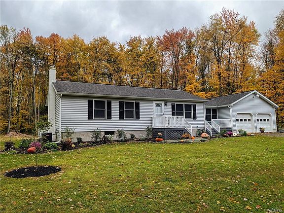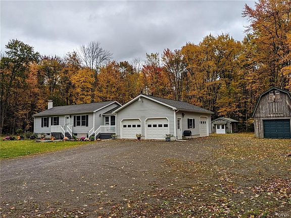 WOW! This one right here is THE ONE. This ranch-style home sits on nearly FOUR perfect & partially-wooded acres. This ranch also features an attached oversized 3-car garage in addition to numerous outbuildings for even more storage and functionality including a two-story carriage house & finished/heated "shed" w/electric which could serve so many purposes. Gorgeous fresh landscaping everywhere. There is a large (12'x16') heated breezeway between the attached garage and the home providing great flex space and opportunity to get to the front sitting porch, backyard, garage or house. Inside, you'll find updates throughout both cosmetically & mechanically. Hardwood floors almost entirely throughout in GREAT shape. Corian counters in the kitchen & beautiful cabinetry. All newer kitchen appliances will stay as will the washer/dryer located conveniently on the first-floor for true one-level living. NEW high-efficiency furnace AND CENTRAL AIR as well as on demand tankless water heater. The roof is ten years young. Newer windows, front door, garage doors (3), leechfield & more! Full and dry walk-up basement, too! Call your favorite Realtor NOW! Showings start Friday, 10/16. DON'T WAIT!!