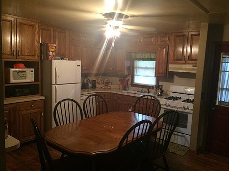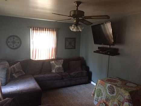 2 bedroom 1 bath home with large eat in kitchen. Home also has a one car garage with workspace, patio, and above ground pool.