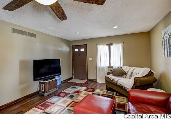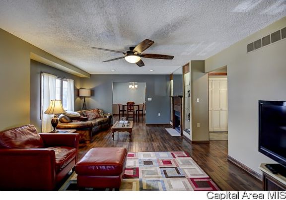 Located on corner lot. Large formal living room features a gas log fireplace enhanced with built in mirrored book shelves. Separate formal dining room. Kitchen has Energy Star appliances that were new in 2015, and will remain. Master Bedroom has private full bath and large walk in closet for storage. NEWly installed hard wood floors in Living, Dining, Master BDRM and Hallway. Second full bath across hall from BDRM 2. Partial basement for lots of storage. NEW ceiling fans, recessed lighting, hot water heater and sidewalk leading to garage. Roof new in 2015 on house and garage. CTIT Internet.