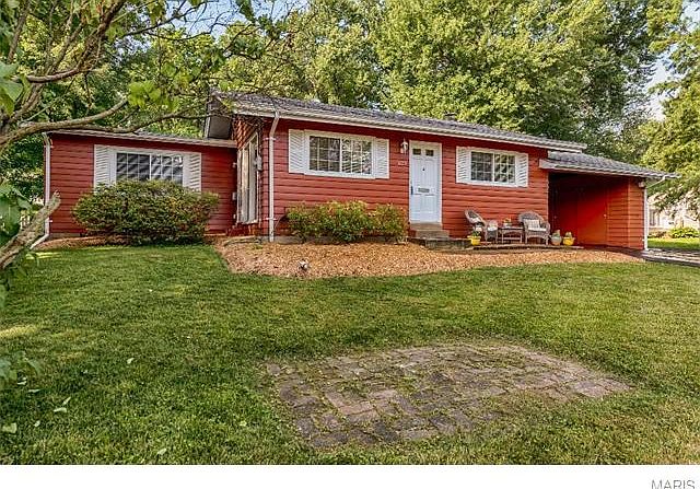 Webster Groves ~ set on a large lot on a quiet private lane this ranch cottage-like home is within walking distance to Blackburn Park. New windows flood the home with natural light and a divided bedroom floor plan ensures plenty privacy. The master suite includes a fitted walk in closet and full bath. Total of 3 bedrooms / 2 full baths, family room with wood burning fireplace, bright living room, eat-in kitchen and partially finished lower level. This home is offered at an affordable price in the popular Webster community and school district. Large park-like yard with fencing and a 12 x 12 wood deck. Covered parking with a side entrance to the family room, additional parking including a circle drive. Seller is including full size washer/dryer, all appliances and a one year home warranty plan. Close to Hwy 44 for quick access to anywhere in St Louis and moments from downtown Webster and Webster University. A home to bring years of enjoyment.