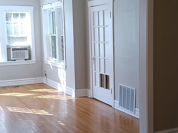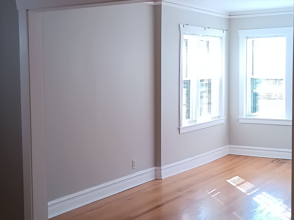 Quiet tree lined streetLarge bedroomLots of windowsLarge dining roomHardwood floors