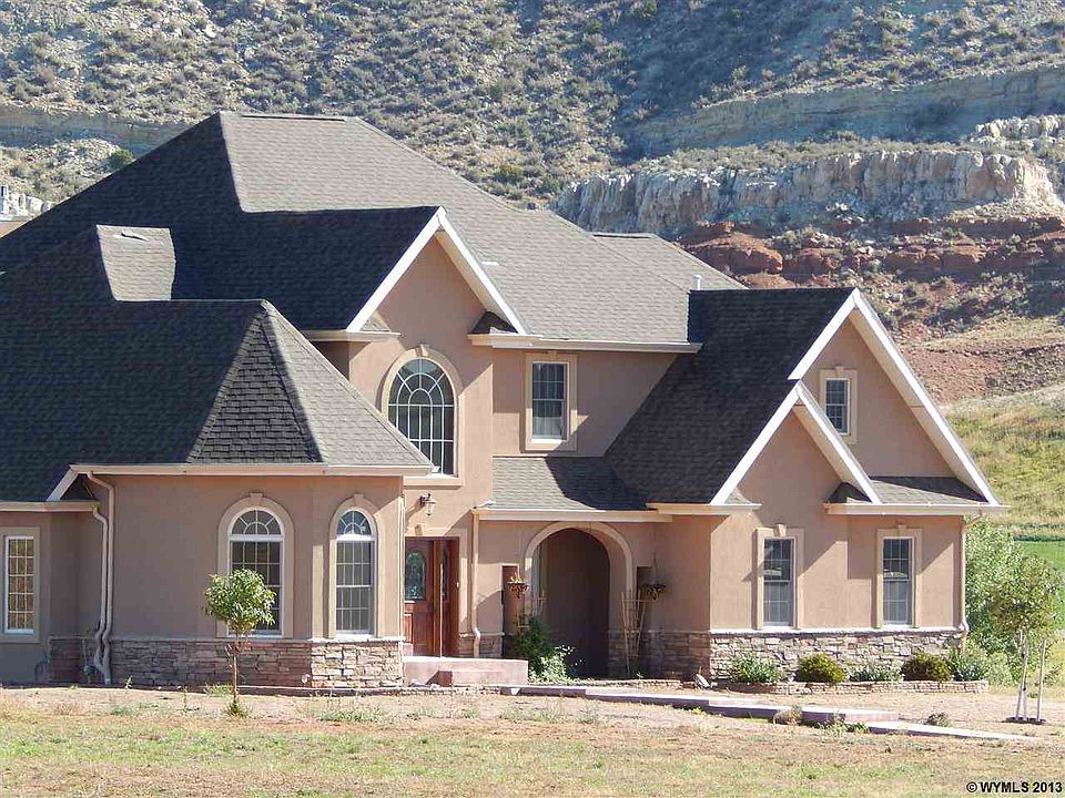 Amazing Home & Location!!! Awake to river & mountain views in this magnificent home. Stucco & stone exterior & a huge functional floor plan. This home has 6 bedrooms plus 2 non-conforming bedrooms or hobby rooms w/ 4.5 bathrooms. A gourmet kitchen, main level master suite, office, main level & lower level laundry, amazing walkout basement w/ wet bar, theatre room & family room. For the outdoorsman, 7 acres w/ a large shop & river frontage. Priced to sell, call/text Macey today 307 359 0099.