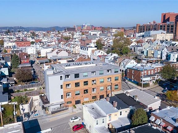 Fantastic top floor condo w/ Great views in Bloomfield Lofts. This spacious unit provides all the elements needed for comfort & easy living. You will love amenities with high ceilings and an open floor plan. Gather around the island in the sleek & stylish kitchen that boasts upgraded wood cabinetry, quartz counters, Stainless steel appliances & tile backsplash. Retreat to the owners suite featuring double vanity, gleaming marble floors and a walk-in shower. Relax on the private balcony off the kitchen. Additional features: in unit laundry, 1/2 bath, Large owner suite closet, designated in door garage space. Additional building features are secure entry, elevator, trash chutes, fitness room, outdoor terrace, dog washing station & bike rack. Walk to shops, restaurants, universities & Pittsburgh. 1 block off Liberty Ave.