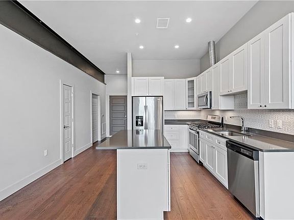 A gem in the Bloomfield neighborhood of Pittsburgh, I present Unit 201 in Bloomfield Lofts. This unit features one bedroom with ensuite bath and a powder room near the entry. Hardwood floors throughout are met by white cabinets and gray stone countertops, including a large kitchen island and Whirlpool stainless steel appliances. Off the living room there is a covered private terrace perfect for the spring, summer, and fall seasons with a fantastic view. High ceilings, large window for natural light, & an original steel beam running the length of the unit shows the unique character of this historical building. Also included is a Nest thermostat and washer/dryer hookups in the laundry room. Deeded parking, gym, dog wash station (pet friendly!), elevator, and an outdoor common terrace are all features of the Bloomfield Lofts. Located one block from the Bloomfield Saturday Market, and minutes from local hospitals and research centers, this centrally located condo is a perfect city retreat.