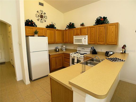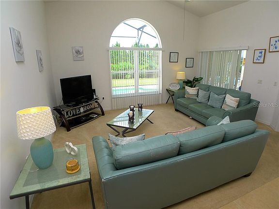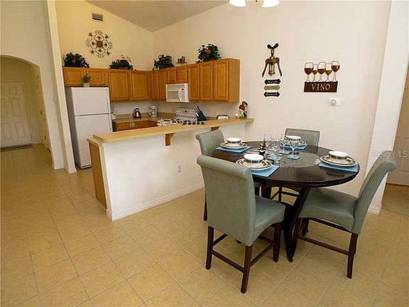 Fantastic 3 bed 2 bath fully furnished open concept home with South facing heated pool, located in the highly sought after gated community of Highgate Park. Interior features include vaulted ceilings, separate formal living and dining room, kitchen with breakfast bar and nook overlooking the family room. Master bath features dual sinks, garden tub and glass enclosed stand up shower while master bedroom offers direct access to the pool area via sliding glass doors. The heated pool offer's privacy with no rear neighbors. The garage has been partially converted to an extra flex space with pool table, foosball table & dart board which all convey. Highgate Park features 24 hour CCTV, lawn maintenance including fertilizing and tree trimming, private tennis court, community playground, exterior pest control, trash valet and basic cable which are all included in the HOA fee. Conveniently located close to restaurants, shops and area theme parks. This home is perfect for a primary residence due to its central location or as an investment home with its great rental history.