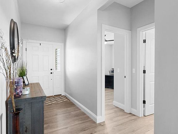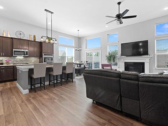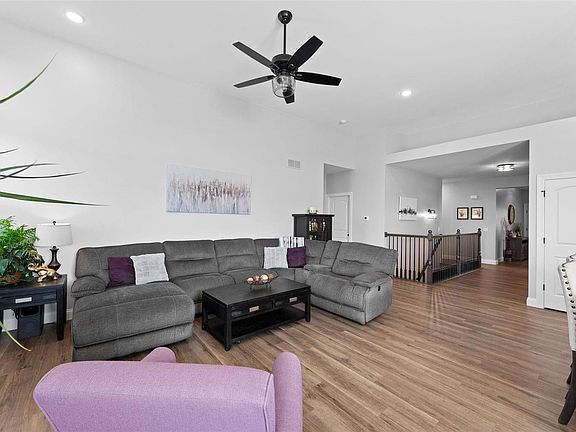 Exceptional 4-bedroom, 3-bath ranch home in desirable Streets of Caledonia, Wentzville-Liberty school district. This Payne Family Homes DaVinci model boasts a welcoming entry foyer that seamlessly transitions into a spacious great room, featuring a gas fireplace, LVP flooring, ceiling fan & recessed lighting. Gourmet kitchen is equipped with 42" cabinetry, quartz countertops, double wall ovens, SS appliances, & LVP flooring. The main level primary suite showcases neutral paint, plush carpeting, & en suite bath. The primary bathroom is designed with double wave bowl sinks, adult-height vanity, LVP flooring, & generous walk-in closet. Bedrooms 2 & 3 offer neutral paint & carpeting. Newly finished walk-out lower level is perfect for entertaining, complete with rec/family room, bedroom, & full bathroom. Additional highlights include a 3-car garage, a large composite deck, covered patio & mud room/drop zone off garage & main floor laundry. Residents enjoy access to pool & clubhouse.