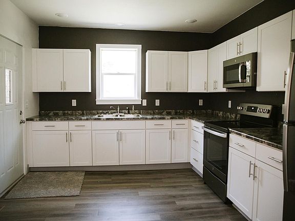 Completely remodeled 4 bedroom home with a cozy front porch! Remodeled kitchen has beautiful new white cabinets. Main floor laundry with 1/2 bath. All new flooring - carpet and luxury vinyl plank flooring, new light fixtures & plumbing & electrical. Gas furnace (<5 yrs old), hot water heater (<2 yrs old) & new ductwork! There is a shed in the back yard. Ready to move right in!