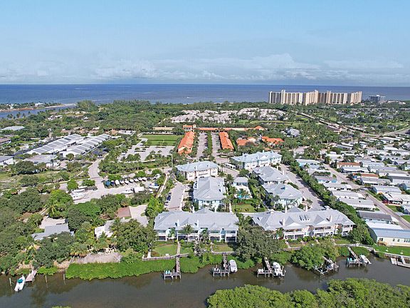 This rarely available WATERFRONT townhome at Inlet Waters in the heart of Jupiter's Inlet District - can be yours! Enjoy peaceful Sunsets, palm trees and tropical breezes from your rear patio/Lanai or primary suite balcony as you look west over the Intracoastal Waterway. This Key West style townhome was constructed in 2020 and offers a metal roof, hurricane impact windows, ten foot ceilings, open concept first floor living area, porcelain tile floors, first floor powder room with three spacious bedrooms, two bathrooms, office/flex room, and laundry room upstairs. The primary suite has a large on-suite bathroom, two walk-in closets and a balcony/terrace overlooking the waterway, common dock, and lush tropical landscape. This truely is the definition of LOCATION, LOCATION, LOCATION!