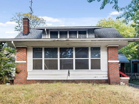 Tons of character in this Brick Bungalow with 1486sqft! Enclosed front porch (9'x22'), living room, dining room, kitchen, 3 spacious bedrooms, 2 bathrooms, large attic, full basement, 2 storage sheds, concrete driveway with carport. Living Room has ample windows and woodburning fireplace with built-ins on each side. Spacious dining room with ceiling light fan. Kitchen includes: refrigerator, stove/oven, pantry, built-in cabinets, built-in ironing board, and side access door to carport. Hallway bath has original wall tile, laundry chute in floor, and built-ins for storage in hallway. From kitchen, there are stairs going up to large open attic that could be finished or used as storage. Full basement is unfinished with updated electric panel, furnace, gas water heater, laundry hookup, plus washer is included. Throughout home there are high ceilings, original woodwork, possibly hardwood floors in living room and dining room under carpeting, not sure of bedrooms. Roof is about 8 years old, HVAC is fairly new. Immediate possession, selling "AS IS".