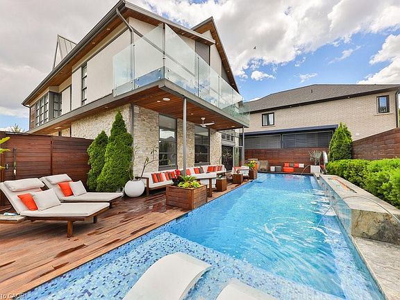 Unlike anything you have seen before. Luxury redefined in this modern beauty with outstanding architectural features and the utmost attention to detail. The home has been recognized by the Globe and Mail as one of Canadas most automated homes and has been featured in various films. It has been leased by celebrities for up to $18k a month. The home offers soaring ceilings, Brazilian santos mahogany floors, Control4 home automation with 34 speakers , remote controlled blinds, top of the line sinks and toilets, heated floors in basement, steam showers, heated driveway, car lift in garage. This home has it all! Situated on a quiet court this home offers almost 5000sqft of unparalled living. Soaring living room with 24ft ceilings, linear fireplace and a seamless transition to the backyard oasis. The impressive kitchen offers stunning nacardo quartzite counters with waterfall island, African Mahogony cabinetry, top of the line appliances. Primary bedroom offers a sophisticated place to unwind and an impressive ensuite that offers all digital controls for the steam shower that includes lighting and music. Additional bedrooms are spacious and offer semi-ensuites or an ensuite. Entertainers dream basement with exquisite onyx bar, temperature controlled wine cellar, mist fireplace, built in speakers. Stunning resort like backyard featuring saltwater pool, fountains, fire feature and outdoor kitchen. The location offers easy access to the airport, major highways, schools and parks.