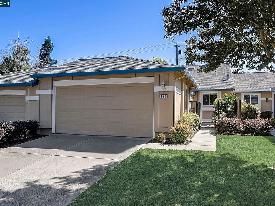 Beautiful single level Townhome located in the very desirable Bancroft Village! 3 Bedrooms and 2 bathrooms, large living room with vaulted ceilings and brick fireplace. Four large skylights bring in a ton of natural light. Primary bedroom with en suite bathroom and large walk in closet. Sliding doors off living room invite you to a nice backyard for BBQ or just relaxing. Small atrium off the living room. Attached 2 car garage with washer and dryer. Easy walk to the community pool. Freshly painted and new carpeting in bedrooms. Minutes to shopping and top rated schools.