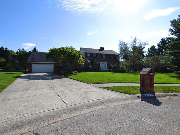 Tucked away at the end of a cul-de-sac in a quiet neighborhood just outside downtown Gahanna, you'll find this expansive, traditional brick home. It is beautifully perched upon a sprawling 1+ acre lot lined with mature fir trees at the rear. Exterior features include a concrete driveway, brick front entry walkway, as well as patio in the rear and a split 3 car garage. Inside you'll find a formal living room and dining room off the foyer, a powder room, kitchen with granite counter tops and black appliances attached to an eat-in space that overlooks the sunken family room with fireplace, a first floor den and laundry room. Upstairs --4 large bedrooms, 2 more baths and a bonus room. The lower level features workout room, rec room office/bedroom and full bath. Get here soon!