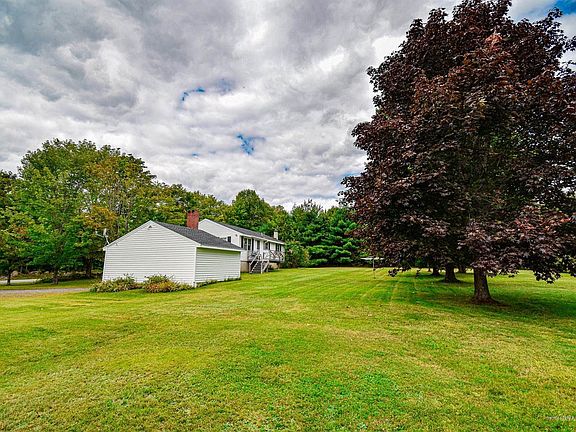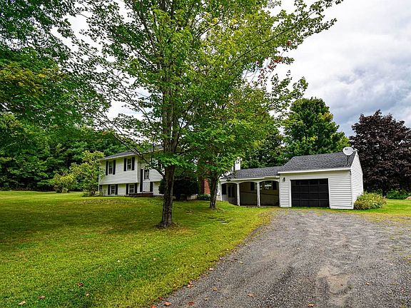 Charming split-entry home on a nearly 4-acre lot that feels more like a ''back forty.'' Amenities include full in-law apartment in basement, a bricked-in wood stove fireplace in the huge upstairs living room, one-car heated garage, and a breezeway that facilitates coming and going or sittin' and sippin'. Gorgeous and diverse grounds with rock wall at roadside, mature trees, a field, and berry brambles. Local snowmobile club trail runs through field by permission of current owner. With some updating this will be a stunner that you won't want to leave.