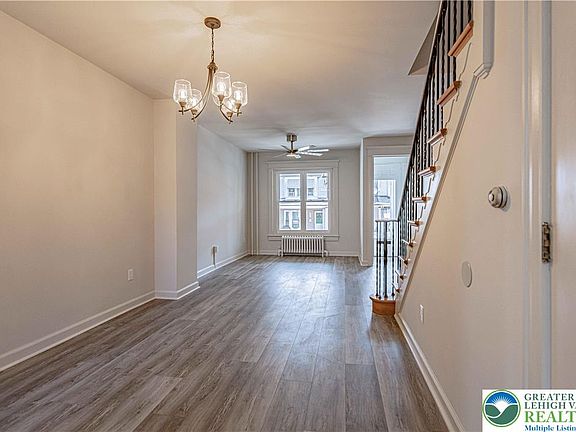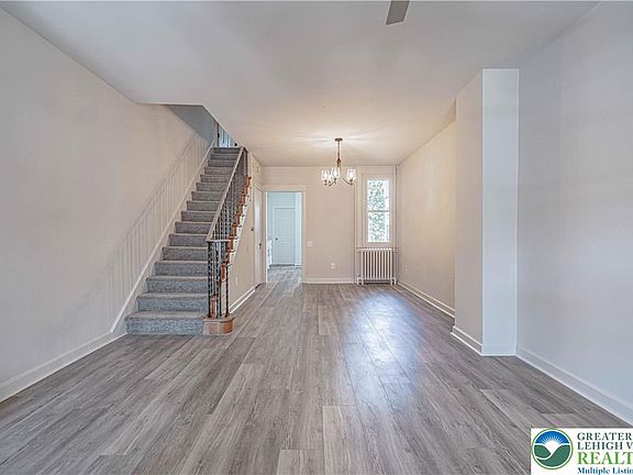Step into timeless charm with this beautifully refreshed 5-bedroom, 1.5-bath end unit townhome in the heart of Allentown. Every inch of this classic home has been thoughtfully updated, starting with a fresh coat of paint and stylish new flooring throughout. The first floor boasts durable "LifeProof" luxury vinyl plank flooring, while plush wall-to-wall carpeting adds warmth and comfort to the second and third floors. The completely remodeled kitchen shines with crisp white cabinetry, quartz countertops, and an inviting layout perfect for home chefs and entertainers alike. The first floor half bath is key when having guests over. You'll love the abundant storage space in the full basement, ideal for organizing everything from seasonal decor to outdoor gear. Economical natural gas heat and low property taxes make this home as budget-friendly as it is beautiful. Enjoy summer evenings on the spacious covered front porch and stay cool inside with new ceiling fans in both the primary bedroom and family room. 2 car parking pad in back provides off street parking. This location provides easy access to all major highways making it easy to commute to work or travel to all the Lehigh Valley has to offer including schools, shops and restaurants. With its curb appeal, modern upgrades, and unbeatable value, this Allentown gem is ready to welcome you home. Schedule your showing today as I guarantee that you will not be disappointed!