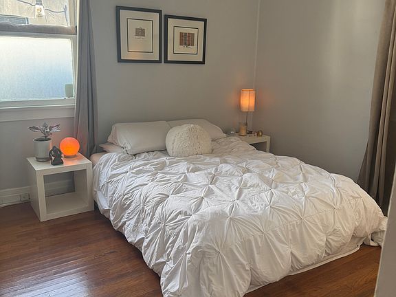Hardwood floors, 3 mini splits for ac and heat have been added to the living room, the dining room and bedroom, ceiling fans, there is also a good floor furnace that and several ceiling fans so the place is comfortable throughout the year. In the kitchen there is a stove and fridge and a big handy butcher block stand. Two spacious hallway closets + a smaller one in the bedroom. You will have priority for the driveway. There is a washer/dryer to share in a garage. I live next door, I'm quite and easy to get along with and quick to respond if something needs attention. I pay for water. You would be responsible for electricity and gas and there is a trash fee. I am open to consider a pet.