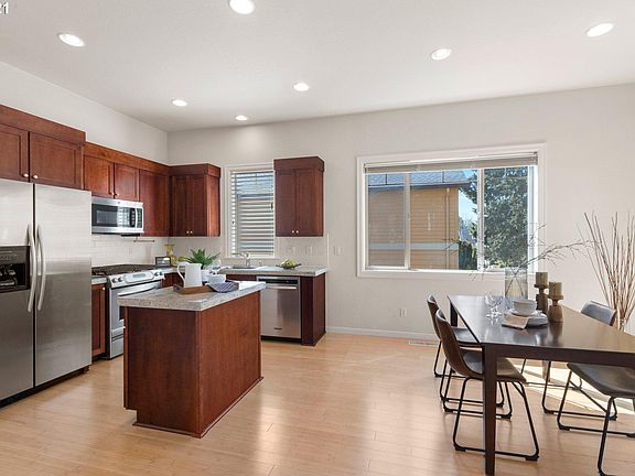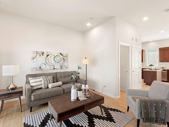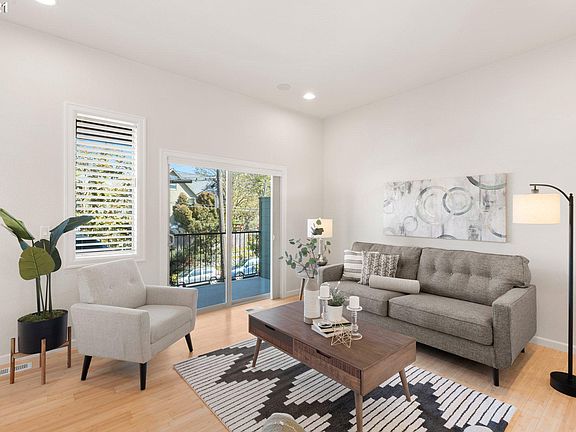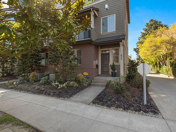 End unit townhome w/attached 2 car garage & covered balcony!! Lots of light, 10' ceilings, Bamboo floors & half bath on the main. Stainless steel appliances, granite countertops & pantry in island kitchen. LR has gas fireplace, built-ins & slider to balcony. DR adjacent to kitchen. Each bedroom is suite 2 upstairs & 1 on lower level w/Murphy bed could be den. Upstairs laundry & central vacuum. Easy NE location. Healthy HOA. Irving Park for tennis, basketball, picnics, parties & walks.