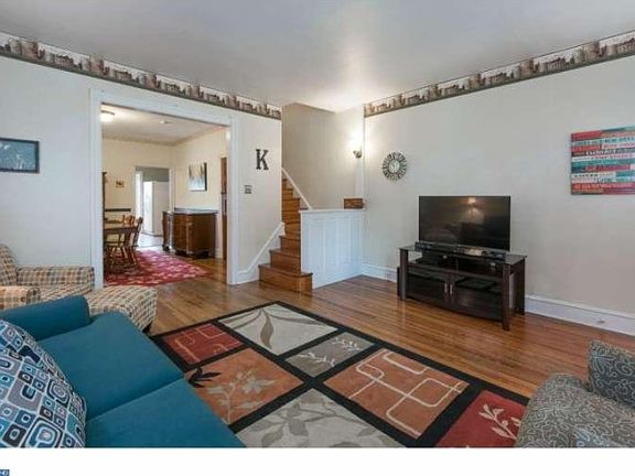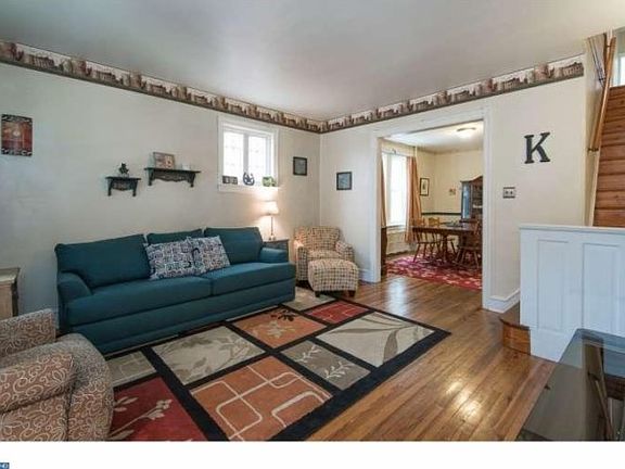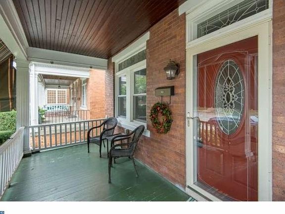 What a wonderful find. This enchanting brick twin home has been lovingly maintained, but also modernized! The entire tree lined street has beautiful curb appeal. Situated back from the road with a nice front lawn, this early 20th Century classic American Victorian twin has distinctive neo classical elements, including a split pediment ornamentation above the 2nd floor bay window. A deep front porch welcomes you to relax with its awning providing privacy. The original woodwork and columns, as well as beautiful leaded glass transoms have been retained and all double hung windows, front door and Pella storm door were installed in 2013. Beautiful refinished hardwood floors extend throughout the living areas and bedrooms. Step into a spacious living room, light and bright from many windows, including a square leaded glass window, and is open to the dining room beyond. The high baseboards and solid wood doors are original to the home. Following through from the dining room is a large eat-in kitchen updated in 2010. It has 42" maple cabinetry with brushed nickel hardware, solid surface counters, an undermount sink, faucet with sprayer, garbage disposal, ceiling fan and beadboard trim. There is a Frigidaire gas stove, Kenmore side-by-side refrigerator and the butcher block island with matching table are also included. The kitchen has a peak through window to the large mudroom that boasts a great pantry for more storage. A new back door and storm door were installed in 2013. The deep back yard is lined on one side by tall hedges, has a new vinyl fence added 2014 and a walkway leading to the garage. Beautiful hardwood stairs illuminated by a lovely wall sconce takes you to the 2nd floor with a master bedroom, 3 additional bedrooms, one currently used as an office and a full bath with 2 linen closets, new toilet and oak wainscoting. The master bedroom has a bay window perfect for a reading nook! The basement has bilco doors which provide easy access to more storage. NEW Bradford White hot water heater installed this year has a 6 year warranty. The home has a Columbia gas heater, new vinyl siding on the back, and a 1 YEAR HOME WARRANTY! Convenient to commuting and Norristown Farm Park. The laundry area with a Kenmore washer and GE electric dryer are included as is the complete dining room set.