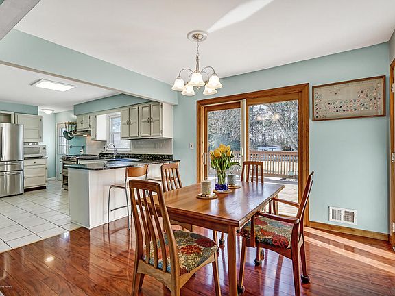 This Absolutely CHARMING Ranch Style Home Features a ''Rocking Chair'' Front Porch on a Gorgeous Acre of Land!*Ready and Waiting for you to Call it ''HOME SWEET HOME''!*3 Bedrooms*One Full Updated Bath*Front Entry to Living Room w/ Shiplap Woodburning Fireplace!*Spacious Peninsula Style Kitchen w/ Breakfast Bar*Granite Counters*Stainless Steel Appl Pkg and Ceramic Flooring!* Formal Dining Room*All Bedrooms feature Wide Wood Plank Laminate Flooring*Updated Sliders to Deck with awning and patio area with firepit!*Septic Updated in 2017*New Roof*HVAC and HWH all 2 Years New and High Efficiency!* Anderson Window in Front and Pella Windows*Public Water*Full Basement*Pull Down Stairs to Attic*Serene Wooded Backdrop* Deep Lot with Plenty of Room for PLAY!*